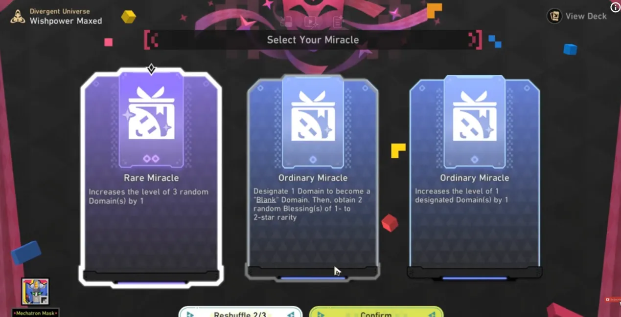 Different Masks generate Wish Power through different mechanics. After upgrading, they not only enhance the Mask’s effects but also unlock various beneficial Miracles.