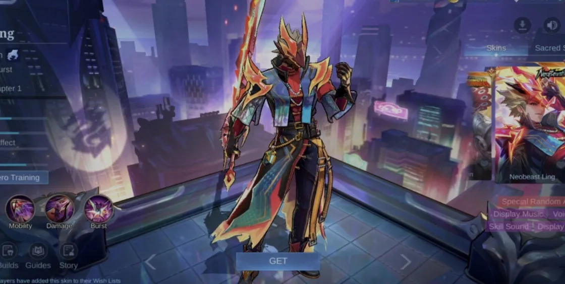 Ling’s Neobeast skin was one of the three skins released during the Neobeast 2.0 event. Neobeast Ling seems to be the most stunning looking skin out of the 5 in my opinion with flashy effects, sleek design and the futuristic playboy look. His sleek armor in shades of neon blue and purple pairs with an elegant sword that compliments its top-tier visual effects.